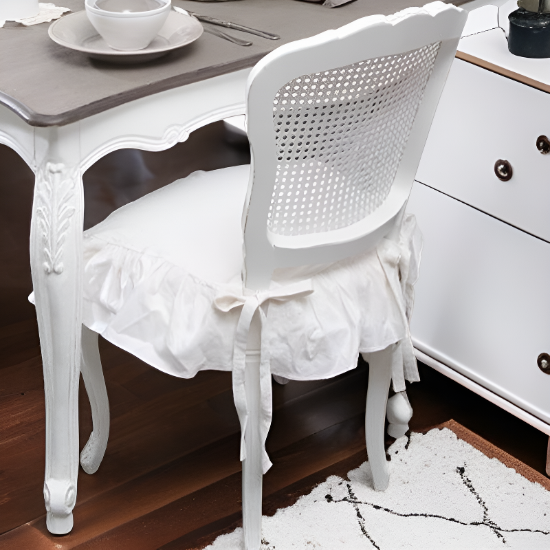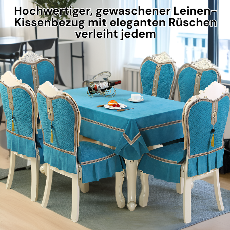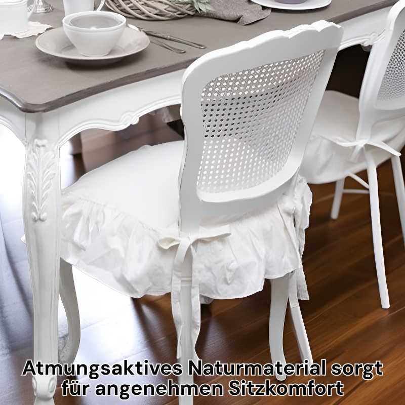 ● Hochwertiger, gewaschener Leinen-Kissenbezug mit eleganten Rüschen verleiht jedem Esszimmerstuhl einen stilvollen und gemütlichen Look.